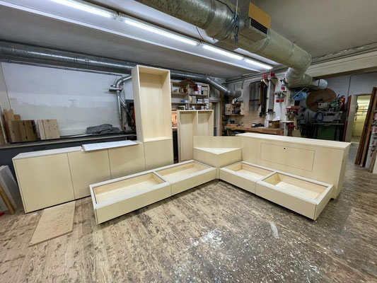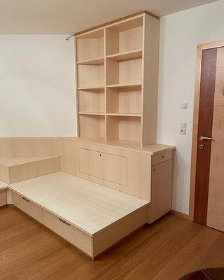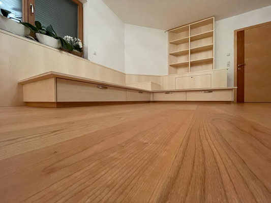 Mit großer Freude durften wir für unseren Kunden eine wunderschöne Wohnlandschaft aus hochwertigem Ahorn und edlem Kirschholz anfertigen und montieren. Jedes Detail wurde sorgfältig geplant und umgesetzt, um eine perfekte Harmonie zwischen Funktionalität und Ästhetik zu gewährleisten. Das Ergebnis sind einzigartige Möbelstücke, die sowohl durch ihre natürliche Schönheit als auch durch handwerkliche Präzision bestechen.